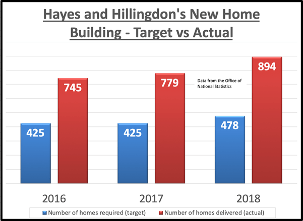 Hillingdon’s new home building target was 1,328 new homes, yet it achieved 2,418, a surplus of 1,090 new homes