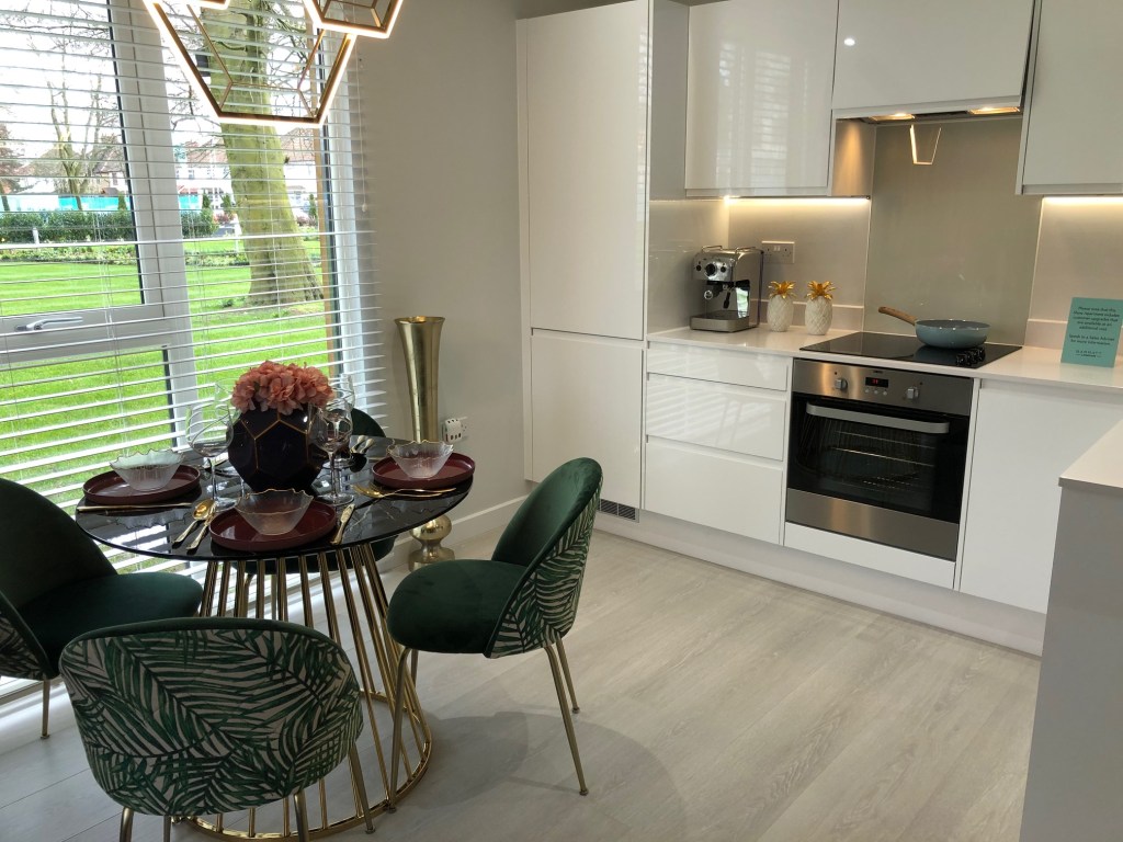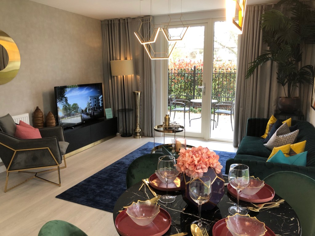 Recently I was invited out by Saira and the team at Barratts homes to the launch of their second building in Hayes Village, the old Nestles Factory near Hayes town. Saira was kind enough to show me around the show flat and explain what they are doing here. As I was coming into the new development what struck me right away was the lovely open space that was created with the original Nestles art Décor building still standing at the end of the green area. It was great to hear that they were keeping the art décor front of the building.