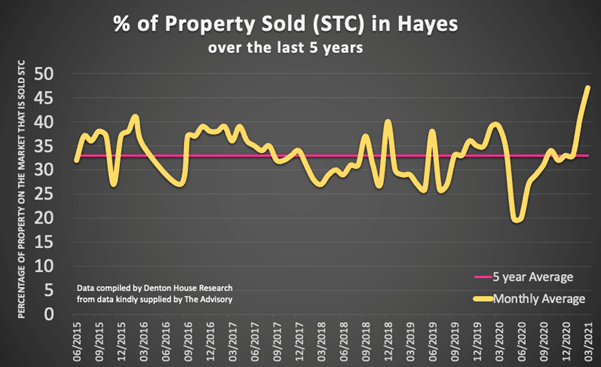 56.5% of properties on the market in Hayes are sold stc